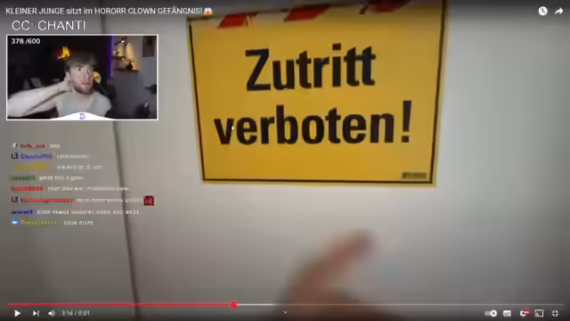 02:23:29Gegen Ende des Streams wird eine aufwändige Horror-Geschichte inszeniert, bei der der Streamer von einem Horrorclown gefangen genommen wird. Mit Hilfe von Bildern und Nachrichten wird eine dramatische Rettungsaktion inszeniert. Die Zuschauer werden in die Handlung eingebunden, indem sie mathematische Rätsel lösen müssen, um den gefangenen Streamer zu befreien.