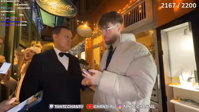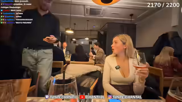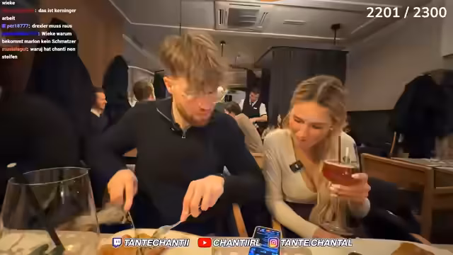 01:29:17Es wird eine Reservierung für das Wiener Restaurant Figgelmüller für sieben Personen gegen 20:30 Uhr getätigt. Dabei wird ein Zuschauer als Essenstester erkannt, der den Stream filmen möchte. Nachdem das 2.000-Subs-Ziel erreicht wird, zeigt der Streamer große Dankbarkeit und verspricht, bei Erreichen dieses Meilensteins in einen Eispool zu springen. Auch seine Mutter wird erwähnt, die über seine Streaming-Aktivitäten informiert wird.