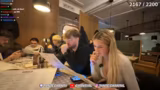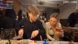 04:20:40Die Gruppe gibt im Restaurant ihre Essensbestellungen auf, darunter ein teurer Trüffelschnitzel für 50 Euro. Im Verlauf kommt das Thema Finanzen auf, und es werden mögliche Rechnungshöhen von 200 Euro oder mehr diskutiert. Theo offenbart, dass er nur 11 Euro Bargeld dabei hat und nicht weiß, ob er die Rechnung bezahlen kann, während Wieke und Blair ihm finanzielle Unterstützung anbieten. Gleichzeitig überlegen sie, noch Cranberry-Dinner zu bestellen, während die Chat-Szene live mitbestimmt.