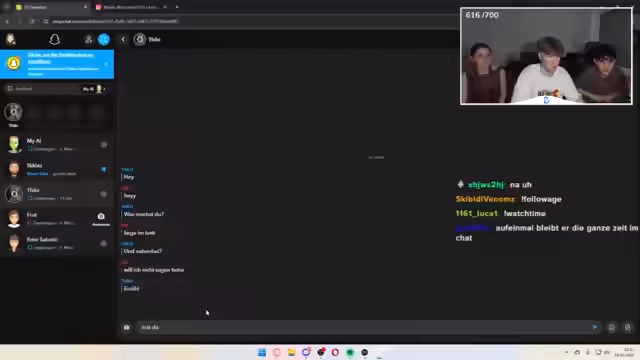 01:01:11Ein Chatpartner, der behauptet 21 zu sein, offenbart seine pädophilen Absichten, indem er explizit nach Nacktbildern einer 13-Jährigen fragt. Dies löst bei den Streamern Ekeln und Gänsehaut aus, gleichzeitig wird jedoch beschlossen, die Konversation fortzusetzen, um den Täter zu exposen. Der Täter bereitet sich auf ein Videoanruf vor und zieht sich an, was die Streamer verstört beobachten.