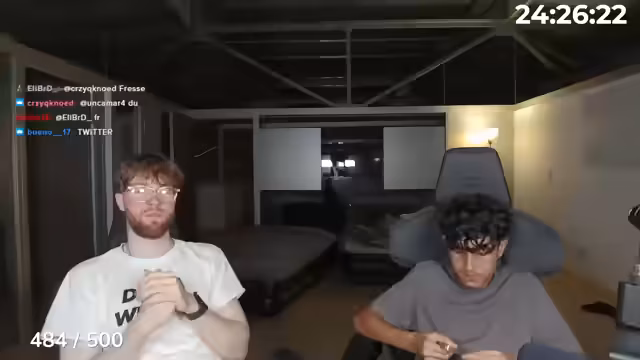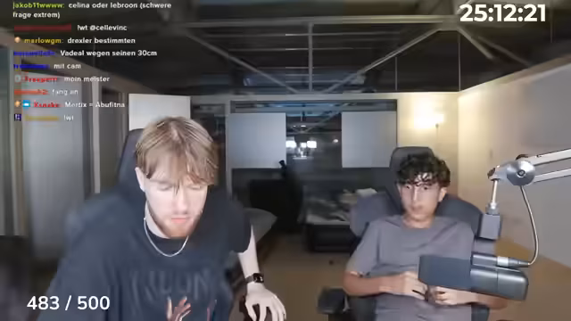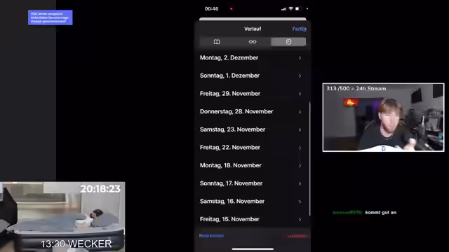 22:38:29Die Streamer planen 'One Question Go' für den Abend, verlagern sich aber auf Wettkämpfe im Basketballwerfen. Justin gibt für die Würfe Geld aus. Ein Timer, der die Streamzeit zählt, macht jedoch Probleme. Es kommt zu einer riesigen Spende von 2000 Euro, was zu Verwirrung führt. Tyler muss die verbleibende Streamzeit neu berechnen, was eine logistische Herausforderung darstellt. Ein Spender will 100 Mauspads kaufen, um den Stream zu verlängern.