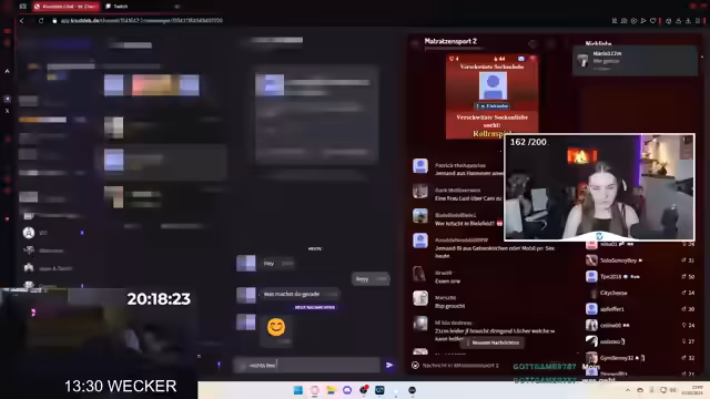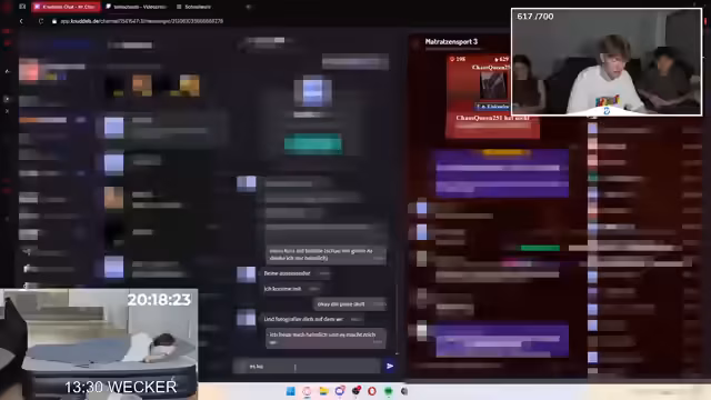 17:03:59Ein dramatischer Streit mit der Freundin Selina eskaliert, da sie über die anstehende Gesellschaft mit anderen Frauen, insbesondere einem 16-jährigen Mädchen und dessen Freund, eifersüchtig ist. Anschuldigungen des Verrats und persönliche Beleidigungen flogen. Marc muss als Mediator agieren, und die Chat-Community mischt sich in die Diskussion ein.