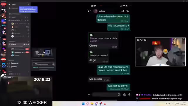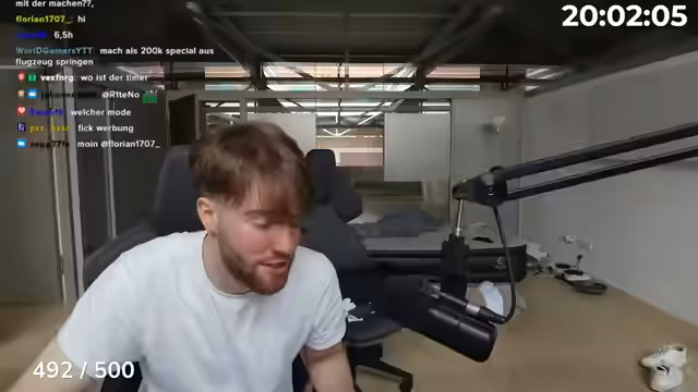 20:02:53Der Streamer berichtet über Erlebnisse aus seiner WG-Zeit, in der um 13:30 Uhr morgens mit Wasser geweckt wurde, um 10 Liegestütze zu machen. Es werden Konflikte und Beziehungen innerhalb der WG thematisiert. Ein zentraler Streitpunkt sei der Neid über Follower-Anzahl bei den Social-Media-Profilen, was zu Stress und Egoismus führte. Durch den ständigen Zusammenschluss und die Dichte der Personenkonstellation sei die Situation oft anstrengend gewesen.
