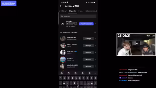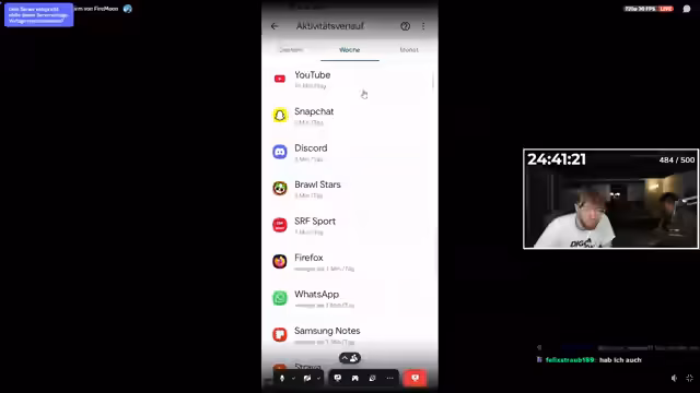 15:59:02Die Hauptaktion des Streams ist die 'Handykontrolle', bei der der Streamer die Bildschirmzeit und App-Nutzung junger Zuschauer analysiert. Ein 15-jähriger Teilnehmer steht besonders im Fokus, da sein Handy eine extrem hohe Nutzungszeit aufweist. Enthalten sind diverse private und problematische Inhalte, was zu Diskussionen über Online-Aktivitäten und den Umgang mit persönlichen Daten führt.