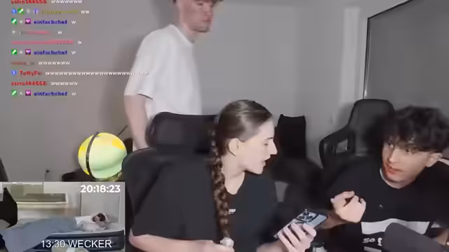 09:13:58In einem spontanen Telefonprank wird die Ex-Freundin von Chad kontaktiert. Die Anruferin gibt sich als seine neue 'Kennenlernphase' out und konfrontiert die Ex damit, dass sie ihm weiterhin TikToks schickt und ihn anruft. Die Situation eskaliert schnell, als die Ex-Freundin umgekehrt die Anruferin beschuldigt, mit Chads bestem Freund zusammen zu sein und selbst nicht die 'neue' zu sein. Beide Frauen äußern sich positiv übereinander und wünschen sich das Beste, was Chad komplett verwirrt zurücklässt.