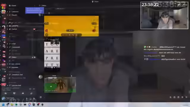 00:38:31Während der Handykontrolle treten erneut technische Schwierigkeiten auf, vor allem bei der Mikrofonqualität und der Verständlichkeit der Teilnehmer. Zwischen den Kontrollen gibt es persönliche Bemerkungen zur Person der Streamerin und ihres Aussehens. Auch der Versuch eines anderen Teilnehmers, den Stream zu unterbrechen, wird erwähnt und diskutiert.