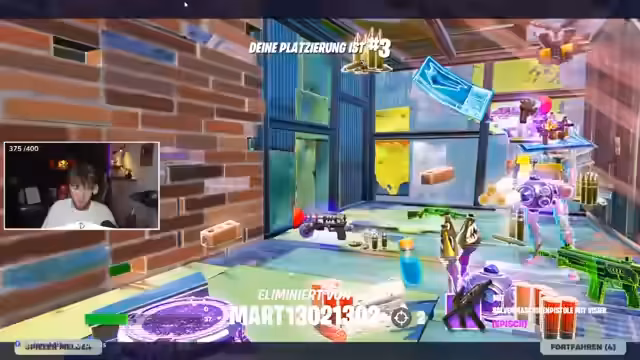 02:00:01Ein spannender Spielzug gelingt, bei dem er einen Gegner geschickt outzonen kann. Dies steigert seine Motivation enorm. Gleichzeitig denkt er laut über sein Set-Up nach, wie z.B. die Wahl seiner Waffe und seine Ausrüstung. Trotz anfänglicher Probleme bleibt er fokussiert und voller Optimismus, dass er die Runde gewinnen wird.