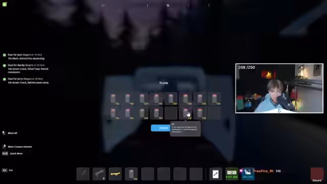 02:40:01Es wird über einen 6K-Deal gesprochen, und der Streamer bedauert, dass er Melissa nicht bestohlen hat. Er äußert sich überrascht über den hohen Umsatz und warnt einen Charakter, nicht die Polizei zu rufen. Der Streamer spricht davon, einen Homie getötet zu haben und fragt einen anderen Charakter, ob er Items hat. Er äußert sich ungläubig über einen 6.000-Euro-Deal und vermutet, dass ein Kunde ein Junkie ist. Es folgen wiederholte Beteuerungen, die Polizei nicht zu rufen, und die Feststellung, dass die Kunden sein Zeug mögen. Der Streamer plant, am nächsten Morgen ein paar Deals zu machen und dann zu seinem nächsten Dealer zu gehen. Er überlegt, ob er Spaß verkaufen soll. Ein Charakter namens Trend wird angesprochen, und der Streamer schlägt vor, alle Deals spät in der Nacht zu machen, da er dann die Polizisten abknallen kann, wenn er genug Munition hat. Ein Kunde hat 7K, und der Streamer macht einen Deal über 10 Green Crack für 9,55. Er entscheidet sich, den Deal am Morgen zu machen und ab dann alle Late-Night-Angebote anzunehmen.
