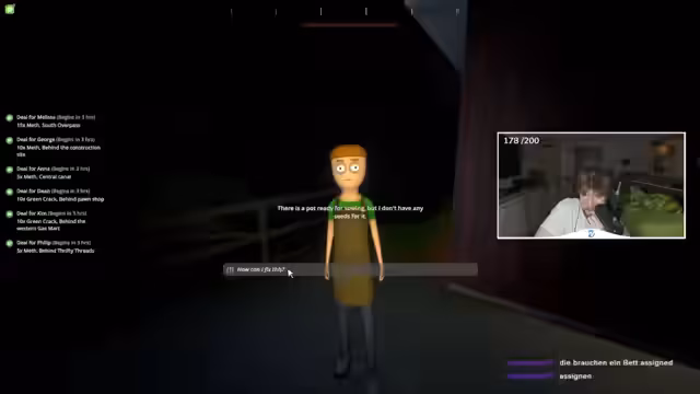 00:25:57Der Streamer handelt mit Drogen und klaut diese auch zurück. Er stellt fest, dass er durch das Zurückklauen mehr Geld verdient als durch den Verkauf. Er fragt seine Kollegen, wo sie das Odd zwischengelagert haben und fordert sie auf, mehr anzubauen. Er fragt, ob er sich eine Schere kaufen soll, um zu ernten und bietet an, Geld zu leihen. Er beklaut Leute und rechtfertigt dies damit, dass er das in seiner Heimat auch gerne macht. Er nimmt Sauerdiesel aus dem Sortiment und konzentriert sich auf Green Crack. Vor ihm sind Polizisten und er will ihnen das Bargeld abnehmen. Er macht einen Big Deal und fordert den Chat auf, sich zu entspannen. Er stellt fest, dass sie alle Late Night Deals gemacht haben und nun alles Odd-Nachts ausliefern müssen. Er fragt nach Baggies und wie man zum Schwarzmarkt kommt. Er will sich umziehen und stellt fest, dass alle Junkies sind.