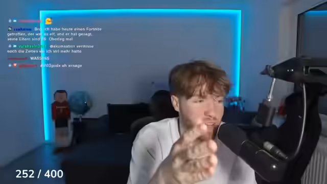 02:00:51Der Streamer konfrontiert den Nutzer mit Zukunftsplänen, wie dem gemeinsamen Urlaub in Griechenland in einer Villa für 7000 Euro. Es wird über die stabile Beziehung des Nutzers mit seiner 17-jährigen Freundin gesprochen, die angeblich schon eine eigene Wohnung hat. Am Ende des Streams geht es um das Einkommen des Streamers, der ein 7-stelliges Vermögen erwähnt und erklärt, wie sein Leben früher war, als er für 800.000 Aufrufe nur 300 Euro verdiente.
