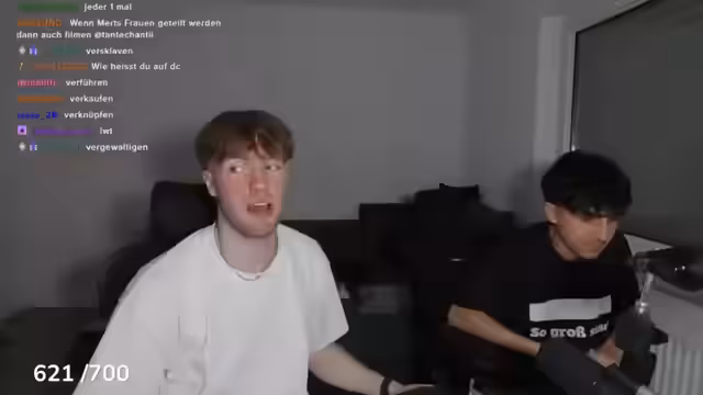 00:00:43Es wurde offiziell eine YouTuber-WG gegründet. Es wird über ein Placement gesprochen, das in Dollar statt Euro ausgehandelt wurde, was aufgrund des Euro-Kurses zu finanziellen Einbußen führte. Es wird gescherzt über das Zusammenleben mit einem 16-Jährigen und das 'Klären' von Frauen. Es wird über das T-Shirt des Streamers diskutiert, das bald erscheinen soll, und über vermeintliche Schönheitsmerkmale. Der 16-jährige WG-Mitbewohner wird für seine Schlafgewohnheiten aufgezogen. Es wird darüber gesprochen, wie man Zuschauerinnen 'klären' könnte, wobei ein Discord-Call namens 'Frauenklären' erwähnt wird. Es wird überlegt, wie man Frauen auf verschiedenen Plattformen anspricht und 'verteilt'. Es wird über den Dönerladen des Vaters gesprochen, der in der Mehmetallee 1 liegt und für sein besonderes Fleisch bekannt ist. Es wird die Idee eines 'Haram-Döners' mit Schweinefleisch diskutiert und als Marktlücke erkannt.