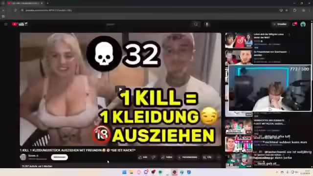00:13:28Es wird über einen Clip von Alex Dimakos diskutiert, in dem seine Freundin ihm bei drei Kills in Fortnite einen bläst, wobei das Video zensiert wurde. Es wird auch über ein Video von Zemax diskutiert, in dem er Fingerspiele an einer Frau vornimmt, und die Bereitschaft, dafür Geld zu bezahlen. Die Diskussion dreht sich um die Frage, ob man für OnlyFans bezahlen würde und was man dort recherchieren würde. Es wird auch über die Abzocke bei OnlyFans gesprochen, bei der man angeblich für zusätzliche Bilder bezahlen muss. Es wird über deutsche OnlyFans-Creatorinnen gesprochen und ob man auf sie schon einmal 'geguhnt' hat. Die Diskussion schweift zu der Frage ab, ob man einen männlichen deutschen Creator 'beguhnt' hat. Es wird auch überlegt, ob man selbst OnlyFans starten sollte, um Kontakt zu Frauen zu haben, zu denen man normalerweise keinen Kontakt hätte.