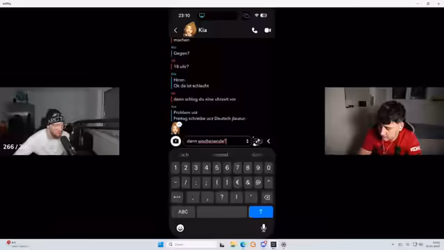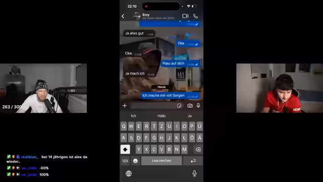 00:40:23Als dritten Fall bearbeiten die Streamer Luis, der 18 Jahre alt ist und Hilfe bei der Kontaktaufnahme mit einer 18-jährigen Mitschülerin sucht. Der Fokus liegt auf dem Verfassen der ersten Nachricht, nachdem der Chat nach längerer Zeit inaktiv war. Der Streamer rät Luis, entspannt und ohne Druck zu antworten, während Alex einen ungewöhnlichen und humorvollen Vorschlag macht: Luis solle die Frau fragen, ob sie ein "Kia-Schulbus" sei, was Luis jedoch ablehnt.