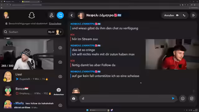 01:00:51Die 16-jährige Person ist über das Verhalten der Streamerin äußerst verärgert und konfrontiert sie direkt damit. Es stellt sich heraus, dass die Streamerin die Identität eines Influencers vortäuschte und nicht die Person war, mit der sie schrieb. Dies führt zu einem heftigen Streit, in dem der Streamerin vorgeworfen wird, die Person bewusst getäuscht zu haben. Die betroffene Person fühlt sich tief verletzt und stellt die Moral des gesamten Streams infrage.