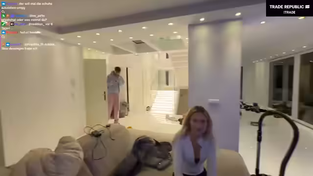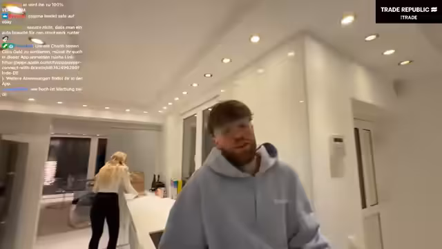 05:59:23Die Unterhaltung dreht sich um das Wohnen in einer Villa und wie es sich das der Streamer leisten kann. Die Antwort ist die Investition über Trade Republic, das als Partner beworben wird. Es wird erklärt, wie man durch ETFs, Zinsen und Aufrunden bei Einkäufen Geld sparen kann. Der Streamer gibt zu, nicht seriös auszusehen, betont aber die Seriosität des Finanzangebots.