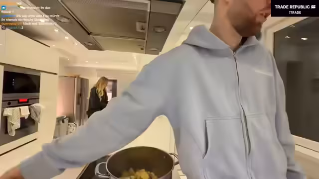 06:54:08Nach dem Kochen folgt eine Phase der Interaktion und des Zusammenhalts. Der Streamer spricht über seine Karriere als Streamer und vergleicht seine Einnahmen mit einem Mindestlohn. Es werden persönliche Anekdoten geteilt, etwa über frühere Kocherfahrungen und die Vorliebe für Lasagne. Die Stimmung ist geprägt von einem gemeinsamen Projekt, wobei auch wieder technische Schwierigkeiten wie schlechtes WLAN thematisiert werden.