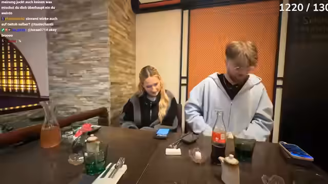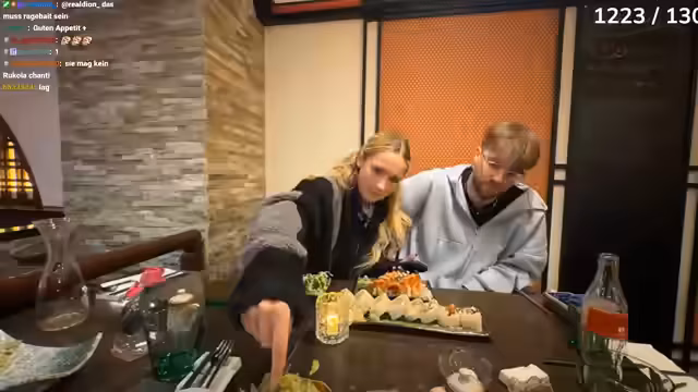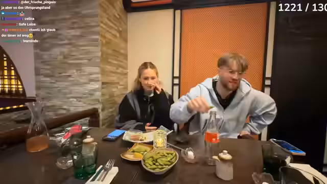 02:11:51Während des Essens sprechen die beiden über ihre Beziehung und teilen Komplimente. Der Streamer beschreibt die Ausstrahlung seiner Partnerin und ihre Lächeln, was sie als sehr positiv empfindet. Es folgt eine Diskussion über die Zukunft, inklusive möglicher Urlaubspläne und der Frage, wie es sich in ein paar Jahren in einem Restaurant mit Kindern anfühlen würde.