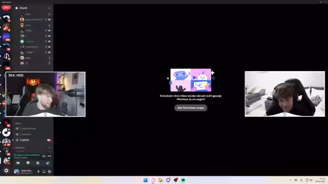 00:01:22Es gibt anfängliche Qualitätsprobleme mit der Kamera, da ein spezielles Setup verwendet wird, um die Kameras von zwei Streamern gleichzeitig anzuzeigen. Es wird diskutiert, ob die Qualität der eigenen Kamera reduziert werden soll, um das Gesamtbild zu verbessern. Es gibt auch Mikrofonprobleme, die zu leiser oder übersteuerter Audioqualität führen. Verschiedene Lösungsansätze werden ausprobiert, um das Problem zu beheben. Dann wird der Discord-Server erwähnt, wo Zuschauer beitreten und ihre Bildschirme teilen können, um am Handy-Kontrollier-Format teilzunehmen. Es wird spekuliert, wie alt die Zuschauer sind, wobei die Schätzungen zwischen 8 und 19 Jahren liegen. Es wird betont, dass jüngere Zuschauer die Teilnahmebedingungen von Twitch beachten müssen.