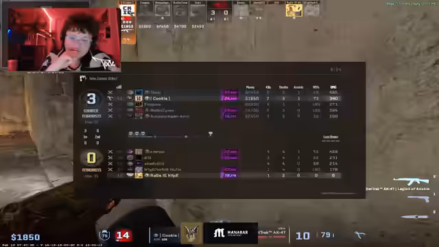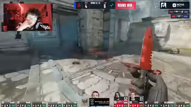 08:48:40Während eines weiteren Spiels auf Nuke, diesmal auf der Counter-Terrorist-Seite, zeigt sich, dass die taktischen Schwierigkeiten anhalten. Der Kommentator ist sichtlich verärgert über die eigenen Leistungen und die des Teams, die er als "schlimm" und "epic too much" bezeichnet. Er erklärt die von ihm geforderte Strategie für den Outside-Bereich und äußert sich frustriert, dass diese nicht umgesetzt wird. Trotzdem gibt er nicht auf und versucht, aus einer schwierigen Situation herauszukommen, indem er aggressive Manöver wie Rampe ficken ins Spiel bringt, was jedoch meist erfolglos bleibt und die Situation verschärft.