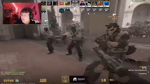 03:09:06Die Kommunikation ist intensiv und drehen sich um taktische Handlungen. Es werden Anweisungen für Rauchgranaten gegeben, um bestimmte Bereiche zu blockieren, und Angriffspfade für verschiedene Spieler festgelegt. Ein Angriff auf Punkt B wird geplant und der Streamer versucht, mit seiner Position einen Mitspieler zu unterstützen. Die Lage ändert sich schnell, als Gegner gesichtet werden, und der Streamer gibt Anweisungen, um die Position zu halten oder zu rotieren, während er selbst in Gefahr gerät.