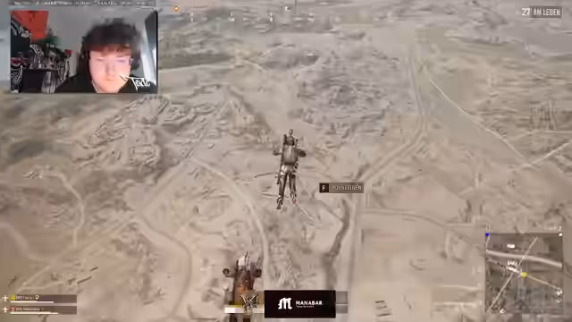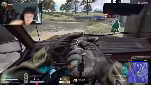 01:33:51Zu Beginn des Streams wird eine Situation beschrieben, in der ein Auto gehalten und gegnerische Spieler vermutet werden. Es gibt eine Diskussion über die Zone, ob man sich in der Safe Zone befindet oder nicht. Der Streamer berichtet von einem Solo-Spieler, der sich in der Nähe befindet, und es kommt zu einer spontanen Kampfhandlung. Währenddessen wird über den Rang gesprochen, und der Streamer erwähnt, dass er gerade Silber wurde.