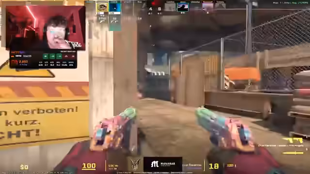 02:10:01In der Anfangsphase des Spiels herrscht eine hohe Unruhe und Unsicherheit. Das Team kommuniziert verwirrt über Positionen wie Heaven und Secret, es kommt zu taktischen Fehlern, da Spieler die falschen Entscheidungen treffen und dadurch früh ins Hintertreffen geraten. Der Gegner nutzt die Desorganisation aus und erzielt erste Erfolge. Das Stream-Team kämpft mit der Orientierung auf der Map und verliert durch unkoordinierte Aktionen und voreilige Pushes erste Runden und einen wichtigen Spieler.