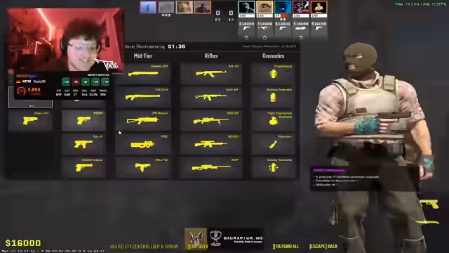 00:15:46Die Vorbereitung für das nächste Spiel nimmt viel Zeit in Anspruch. Der Streamer aktiviert Server und erstellt eine eigene Lobby, da ein Teamkollege noch hinzukommt. Es kommt zu technischen Unstimmigkeiten, da das Crosshair-Einstellungsmenü nicht auf dem Server, sondern im Hauptmenü geändert werden muss. Das Gespräch ist geprägt von Ablenkungen und Nebenaktivitäten, wie dem Verkauf von Skins, während das Team aktiviert wird. Die Chat-Kommunikation läuft, wobei ein Teamkollege gemutet ist.