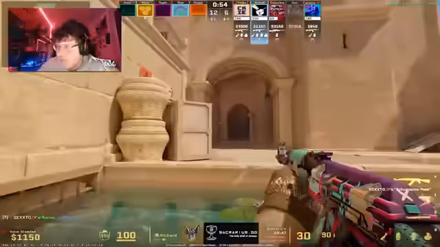 00:28:38Das Gameplay dominiert weiterhin die Unterhaltung, mit einer dichten Abfolge von strategischen Anweisungen, Positionierungen und Analysen der gegnerischen Taktiken. Der Streamer agiert als Anführer und gibt Befehle für B-Site pushes, Smokes und Executes. Das Team arbeitet zusammen, um sich zu verteidigen und das Spielgeschehen zu kontrollieren, wobei die Kommunikation schnell und präzise ist.