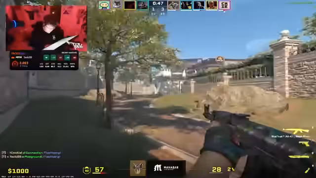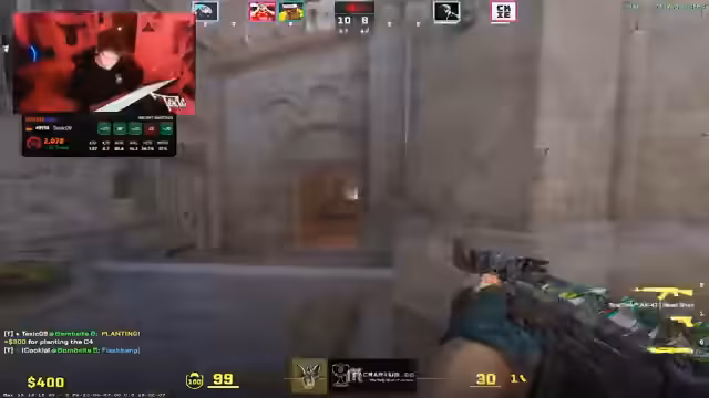 00:08:15Während des Matchs beschreibt der Streamer die Rundenabläufe. Es gibt Taktiken wie Rushes, Smokes und Flashes. Er kritisiert das unkoordinierte Verhalten der Mitspieler, die "wild on-site" laufen, ohne klare Anweisungen. Streamer erlebt FPS-Probleme und unfaire Tode. Er erwähnt eine Situation mit einem "illegalen Shot" und die allgemeine Frustration über den Spielverlauf und die Team-Kommunikation.