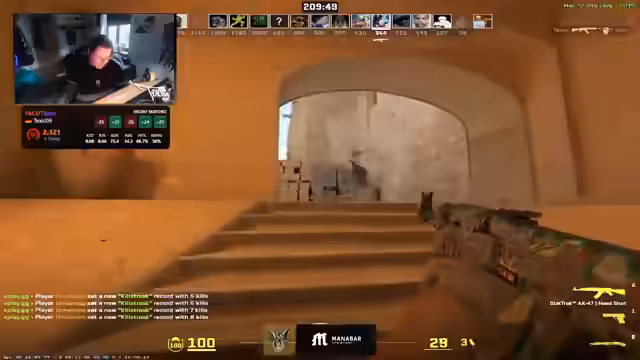 02:28:04Der Stream zeigt einen intensiven Faceit-Match auf hohem Elo-Niveau, bei dem der Streamer und sein Team verschiedene Taktiken anwenden. Es geht um Map-Kontrollversuche, aggressive Pushs, Verteidigungsstellungen und Verwendung von Waffen wie Zeus, Molotovs und Smokes. Die Spieler diskutieren ständig über die beste Vorgehensweise, übernehmen Rollen als IGL (In-Game Leader) und passen ihre Strategien dem gegnerischen Spiel an.