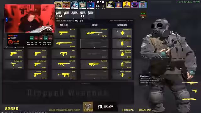 02:02:43Das Team diskutiert über wirtschaftliche Entscheidungen im Spiel, einschließlich des Kaufs von Waffen und Utility für die nächste Runde. Es gibt Debatten über die optimale Verteilung der Ressourcen und die Frage, ob man früh drücken oder in die Defensive gehen soll. Der Streamer zeigt sich besonders verärgert über eine suboptimal ausgeführte Waffensituation und betrachtet verschiedene Optionen, um die Wirtschaft zu stabilisieren und mehr Waffenvielfalt für die Teammitglieder zu ermöglichen.