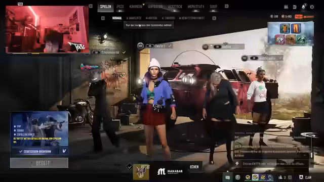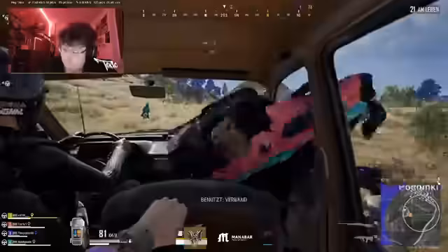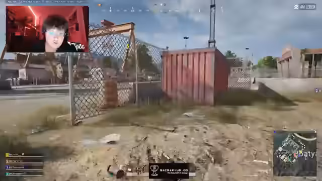 00:00:09Das Stream beginnt mit einem schnellen Matchmaking auf einer roten Map. Der Streamer landet weit oben und bewertet die Position als suboptimal. Er findet schnell einen Geheimraumschlüssel und bittet Teammitglieder, ebenfalls nach Loot Ausschau zu halten, während er selbst nach einem Rucksack sucht. Der Fokus liegt auf der Vorbereitung des Inventars, wie einem 6er Scope, einem Schmerzmittel und einem Notfall Pickup Kit. Die Anfangsphase ist von der Suche nach Ausrüstung und dem Bestimmen der Bewegungsrichtung auf der Map geprägt.