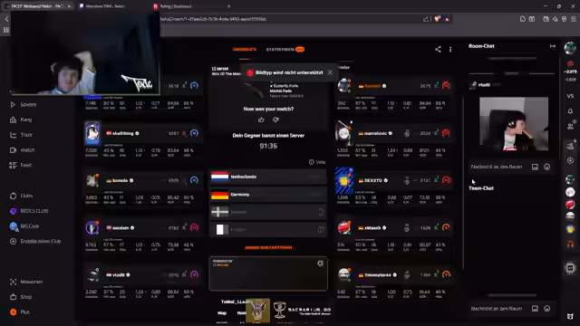 00:00:43Vor dem Match startet das Team mit der Planung für das erste Spiel, Overpass. Es werden Bannstrategien besprochen, wobei sich die Gegner für Ancient entscheiden und Team Totalschaden daraufhin Overpickt. Die Spieler verteilen sich auf die Seiten, Manu und Marcel auf A, Timon, Mersch und der Streamer auf B. Die Kommunikation konzentriert sich auf klare Positionierungen, wie das Clearen von Mitte und Toilets, und das Werfen von Rauchgranaten zur Absicherung der langen Position.