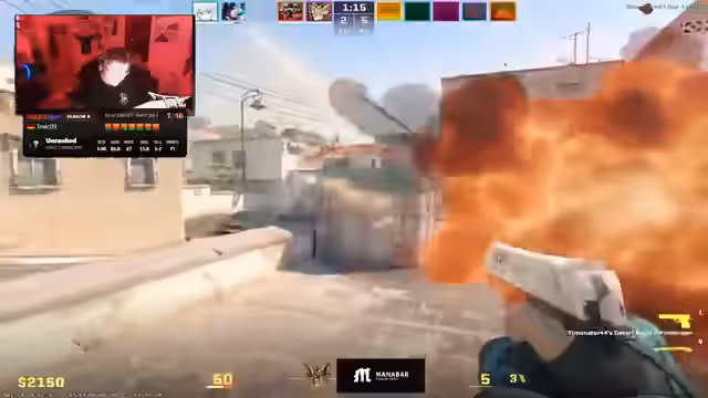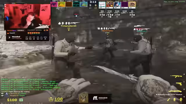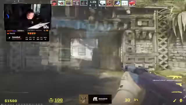 01:51:42Während des Faceit-Matchs auf Ancient gibt es zahlreiche intensive Szenarien. Der Streamer beschreibt kritische Situationen wie fehlgeschlagene Angriffe auf CT und Tempel-Seite, wobei die Kommunikation im Team nicht optimal funktioniert. Es fallen phasenweise verwirrende Entscheidungen, etwa die Nutzung von Dual-Barrettas statt eines strategisch klügeren Zugangs. Es zeigt sich, dass die Strategie oft improvisiert wirkt und nicht konsequent umgesetzt wird.