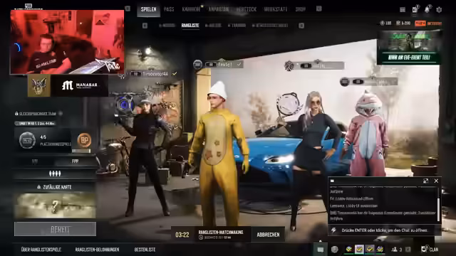 00:00:00Der Stream beginnt mit dem texic_1337, der erwähnt, dass er ausreich Zeit zum Kochen hatte, bevor der Spielstart erfolgte. Er äußert die Sorge, dass das Match langweilig werden könnte und er auf dem Stuhl einschlafen könnte. Patrick erwähnt, dass er einen großen Döner gegessen hat. Streamer vergleicht das mit dem Einschlafen im Schlaf. Er geht dann auf PUBG Esports ein und erwähnt, dass dies global gespielt wird, mit unterschiedlichen Startzeiten in Europa, Amerika und Asien.
