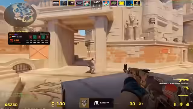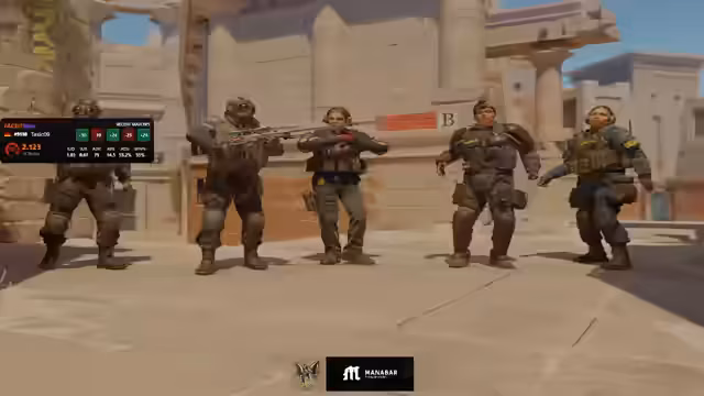 00:28:05Das Spiel selbst beginnt und ist von intensiven Auseinandersetzungen und knappen Runden geprägt. Das Team arbeitet an verschiedenen Map-Strategien für Seiten wie A- oder B-Seite, nutzt Utility geschickt und testet verschiedene Setups. Dabei kommt es zu engen Duellen und knappen Retakes. Ein wiederkehrendes Element ist der Bemühung, durch Fakes und aggressive Peaks das Gegnerteam aus dem Taktischen zu locken. Die Einzelleistungen, insbesondere im clutch-Situationen, sind für den Verlauf der Runden entscheidend.
