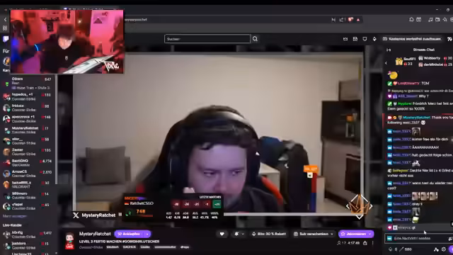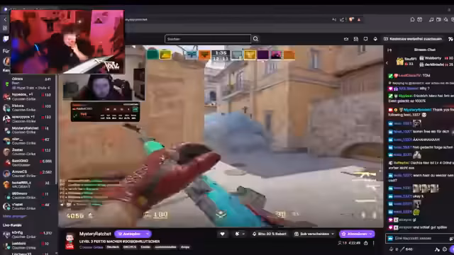 02:16:44Im Stream wird intensiv über das Cheater-Problem in Faceit gesprochen und diskutiert, ob es sinnvoll sei, die Augen vor Betrug zu schließen, wenn ein Cheater im eigenen Team ist. Der Streamer gibt an, dass das Anti-Cheat-System massive Probleme habe und die Bannung von Spielern sehr schwierig sei. Er berichtet zudem von einer negativen Erfahrung mit Smurfs und seinem schlechten Account-Level im Vergleich zu anderen Spielern.