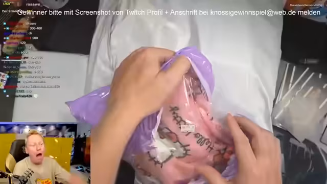 02:52:48Matgio wird als Gewinner eines Überraschungspakets bekannt gegeben, das eine Badehose von Paulana enthält. Der Streamer packt das Paket aus und zeigt den Inhalt, der japanische Kampfkleidung umfasst. Danach gewinnt KOR RIG DW ein XL-Paket mit Boxershorts und einem T-Shirt. Der Streamer betont, dass die Gewinner ihre Adresse einsenden müssen, um die Preise zu erhalten.