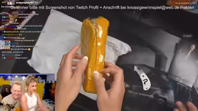 03:30:14Bei der Öffnung der Packs werden verschiedene interessante Artikel entdeckt, darunter eine besonders bequeme Hose aus Kuscheltierstoff, die im Stream mehrfach bewundert wird. Auch eine Drohne wird präsentiert, der Streamer zeigt sich überrascht von diesem teuren Gewinn. Die Teilnehmer im Chat schätzen den Wert der Drohne und congratulieren den glücklichen Gewinner herzlich. Es zeigt sich, dass in den Packs eine breite Palette von Produkten enthalten sein kann.