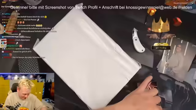 02:15:57Der Streamer beginnt mit dem Auspacken von geheimen Paketen für seine Subscriber. Er erwähnt mehrere Gewinner wie Anni, die ein Birkenstock-Schuhe in Größe 38 erhält, und fügt Autogramme von Frau und Daddy hinzu. Es werden weitere Pakete für alle Subscriber angekündigt, während der Streamer den Content und die Qualität der Artikel hervorhebt.