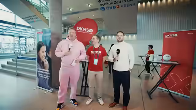 00:14:35Eine besondere Herzensangelegenheit des Abends ist die DKMS-Aktion zur Stammzellspende, die durch die Geschichte der kleinen Mila aus Bremen inspiriert wurde, die an einer seltenen Blutkrebskrankheit leidet. Ein Stand der DKMS ist im Foyer der Arena aufgebaut, wo sich die Besucher typisieren lassen können. Flo und Schradin demonstrieren, wie einfach der Wangen-Schleimhaut-Abstrich mit drei Wattestäbchen funktioniert. Personen ab 17 Jahren können spenden. Für Zuschauer, die nicht in der Halle sind, gibt es die Möglichkeit, sich online unter dkms.de/mila zu registrieren. Ein QR-Code wird eingeblendet, um die Typisierung zu erleichtern. Die Aktion wird als sehr wichtig und lebensrettend hervorgehoben, und die Zuschauer werden ermutigt, sich aktiv zu beteiligen.