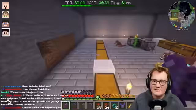 02:39:47Die Diskussion dreht sich um unerfüllte Community-Wünsche und potenzielle Projektideen für Minecraft. Die Kupferrüstung wird als Beispiel für ein Feature genannt, das keinen wirklichen Sinn ergibt und die Progression des Spiels stört, obwohl es für neue Spieler einen gewissen Reiz haben könnte. Es wird die Frage aufgeworfen, warum es keine vertikalen Slabs im Spiel gibt, während ständig neue Holzsorten mit allen Varianten hinzugefügt werden. Es wird beklagt, dass Mojang nicht auf die OG-Spieler eingeht und Features wie Nautius und Phantom, nach denen niemand gefragt hat, implementiert. Eine Projektidee für ein Hardcore-Survival-Erlebnis ohne F3-Debug-Informationen und mit Proximity-Chat wird vorgestellt, bei dem die Spieler gezwungen sind, sich mit Kompass und Taktik zu orientieren. Eine weitere Hardcore-Projektidee beinhaltet, dass der Charakter nach dem Ausloggen angreifbar bleibt, um das Ausloggen im Kampf zu verhindern und ein intensiveres Spielerlebnis zu schaffen.