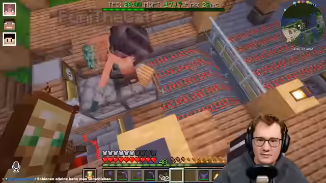 03:10:56Der Streamer bittet die Zuschauer, ihn nächstes Jahr für die Stream Awards zu nominieren, falls sie ihn dort sehen möchten, da er sich nicht selbst nominieren wird. Er betont, dass er sich nicht selbst eine Medaille umhängen möchte, da dies sich „scheiße anfühlt“. Anschließend kehrt der Fokus auf den Freizeitpark zurück. Es werden neue Attraktionen vorgestellt, darunter ein "Wild Western"-Bereich mit einem Saloon, dessen Fassade von Koko gebaut wurde. Eine neue Kinderattraktion, ein "Kinder-Bungee-Jump", wird gezeigt, bei dem die Spieler auf einem Esel sitzen und hochgeschleudert werden. Das Highlight ist jedoch ein brandneues Minispiel, bei dem Spieler Schneebälle auf Ziele werfen müssen, um ihren Esel vorwärts zu bewegen. Die Technik dahinter, die Boote und Wasserströme nutzt, um die Esel zu bewegen und das Spiel zurückzusetzen, wird detailliert erklärt und als das aufwendigste Redstone-Game des Parks beschrieben. Es werden auch Pläne für eine Wildachterbahn und ein Sheriff-Game im Western-Bereich erwähnt. Der Streamer zeigt seine Liebe zum Detail, indem er kleine Werkräume für das Auffüllen von Spielmaterialien einrichtet. Die Eröffnung des Parks ist für Samstag um 20 Uhr geplant, und es wird eine Designagentur beauftragt, Plakate in allen Basen zu ändern, um die Eröffnung anzukündigen.