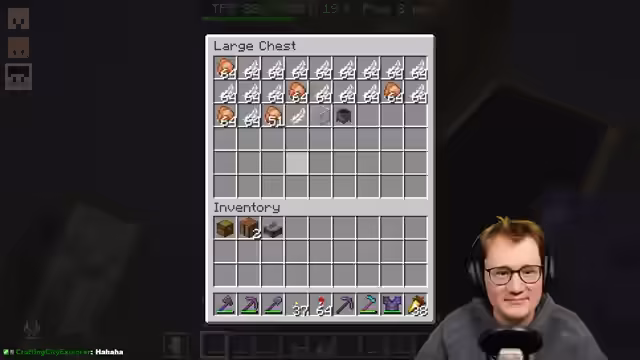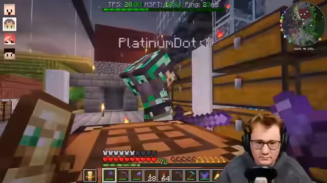 01:32:25Platin wird um Hilfe bei einer „Brain-Afghan-Aufgabe“ gebeten: den Berg links zuzubauen, sodass alle Farmen komplett in den Berg gehüllt werden. Er erhält Cleanstone aus einer Kiste und soll den Berg zunächst aus Stein bauen, später mit Dirt bedecken. JoeCraft zeigt Platin eine Level-Farm, bei der in Öfen Levelpunkte gesammelt werden. Platin erhält die Anweisung, die Items aus den Öfen zu nehmen, indem er Steuerung+Q drückt, um den gesamten Stack in den Ofen zu verschieben und ihn so zu leeren und zu resetten. Er darf die Farmen und die Brennstoffproduktion nutzen.