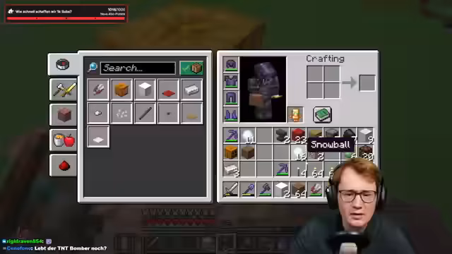 03:42:39Der Streamer kehrt zurück und berichtet, dass es Züricher Geschnetzeltes à la Mama gab. Er spricht mit Pumi über den bevorstehenden Enderdrachen-Kampf. Es wird erwähnt, dass 'Keep Inventory' aktiviert ist, was den Kampf weniger riskant macht und somit schwierigere Herausforderungen ermöglicht. Der Streamer plant, den Drachenkampf spannender zu gestalten, möglicherweise mit verschiedenen Phasen oder dem Spawnen von Wither (obwohl Wither in der falschen Dimension wären). Er teaserte an, dass nach dem Kampf noch etwas Großes passieren wird, was Pumi dazu bewegt, am Event teilzunehmen. Der Streamer arbeitet derweil weiter am ersten Minispiel im Freizeitpark, einem Schneeball-Weitwurfspiel, bei dem die Wurfweite gemessen wird. Er plant, die Technik dafür zu bauen und die Arena mit Strings auszustatten, um die Aufprallpunkte der Schneebälle zu detektieren.