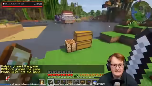 Ein Spieler begeht seinen Geburtstag in Minecraft mit einem musikalischen Ratespiel. Er arbeitet mit einem anderen Spieler an einer Flying Machine, um eine Urwaldinsel zu roden. Parallel dazu plant er den Bau eines Freizeitparks und erhält ein beeindruckendes Geschenk von einem Mitspieler. Trotz Serverproblemen und der Suche nach Redstone treibt er seine Projekte voran.