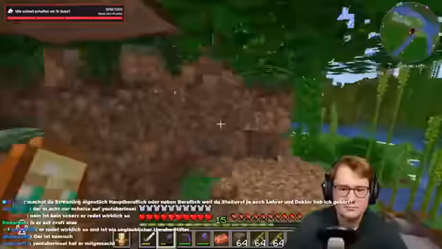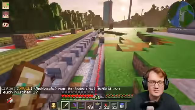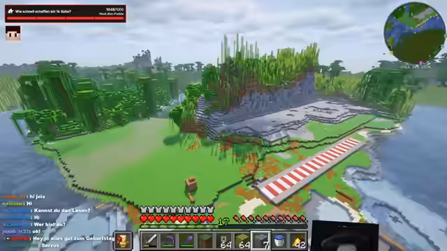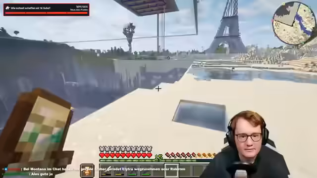 01:01:08Der Streamer bereitet sich darauf vor, einen Zeitraffer der Terraforming-Arbeiten mit der Replay-Mod aufzunehmen, um den Fortschritt des Inselumbaus festzuhalten. Er plant, die Insel künstlich zu erweitern und den Fluss so zu integrieren, dass er in die Insel hineinführt, möglicherweise als Teil einer Wildwasserbahn. Ein Plateau soll an einer bestimmten Stelle entstehen, was weitere Terraforming-Maßnahmen erfordert. Die Vision ist ein großer Freizeitpark in Minecraft, der sukzessive erweitert werden soll. Die Bäume sollen automatisch entfernt werden. Es wird überlegt, wie Boote durch Wasser gezogen und nach oben transportiert werden können, eventuell mit der Nutzung von 'Adgas'. Die Arbeiten konzentrieren sich weiterhin auf die Gestaltung der Startfläche des Freizeitparks und die Vorbereitung für die ersten Attraktionen.