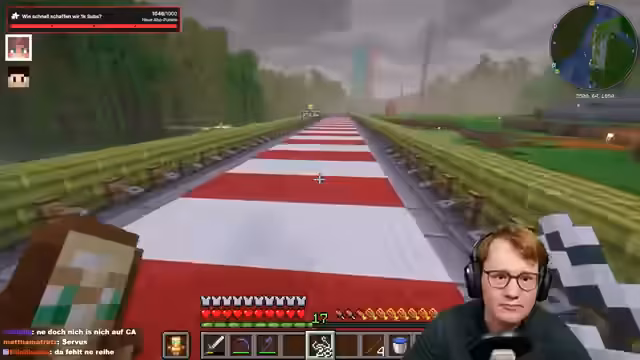 03:36:00Der Streamer berichtet, dass am Bau des Bike-Werflug-Skill-Games für Schneebälle noch nicht weitergearbeitet wurde, da er erst wieder auf dem Server ist. Er plant, ein Weitwurf-Skill-Game zu bauen, das mithilfe von Redstone-Technik die Wurfweite eines Schneeballs misst und Spieler herausfordert, sich gegenseitig zu überbieten. Währenddessen kündigt der Streamer an, eine kurze Essenspause einzulegen, da seine Eltern ein Überraschungsessen zubereitet haben. Pumi the Cat übernimmt in dieser Zeit den Stream. Pumi weist die Zuschauer darauf hin, dass Fragen im eigenen Chat gestellt werden müssen, um eine Antwort zu erhalten, da er sich nur dort stummschalten kann. Er erwähnt auch den Bau des Copper Kingdoms und eines großen Baums, sowie die Möglichkeit, Häuser zu erwerben oder sich ins Grundbuch eintragen zu lassen, um einen Copper Golem zu erhalten.