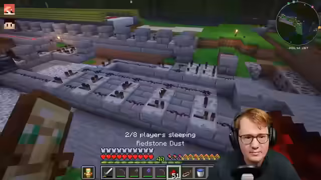 02:11:25Der erste Bereich, der bebaut wird, ist ein Piratenbereich mit einer kleinen Achterbahn. Die Insel, auf der der Freizeitpark entsteht, besteht aus zwei Dschungelteilen, wobei einer davon gerade gerodet wird. Es wird ein Skill-Game geplant, bei dem Spieler Schneebälle über 80 Blöcke weit werfen müssen. Eine Redstone-Technik soll die genaue Wurfweite erkennen. Der Freizeitpark wird sich im Laufe der Staffel erweitern und verschiedene Fahrgeschäfte, darunter eine Achterbahn mit Looping, umfassen. Der Name des Freizeitparks steht noch nicht fest. Jedes Fahrgeschäft wird ein Ticket erfordern, das an der Kasse für Dias erhältlich ist. Die Gunpowder-Farm wird inspiziert, und es wird überlegt, wie Spinnenweben für Tränke zur Vermehrung von Allays gewonnen werden können. Es wird die Funktionsweise einer Redstone-Farm erklärt, die Items mit Notenblöcken sammelt. Ein Spieler erhält Anweisungen zum Brauen von Tränken, die für die Vermehrung von Allays und die Umwandlung von Silberfischen in Spinnenweben benötigt werden. Die Technik zur Erzeugung von Silberfischen und deren Umwandlung in Schleim wird demonstriert.