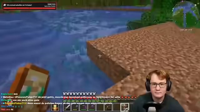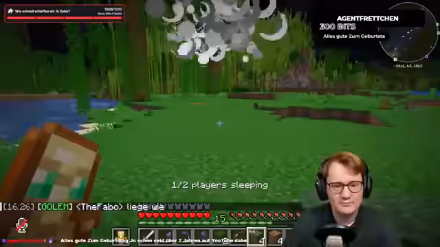 06:52:07Der Streamer begibt sich auf die Suche nach Katzen, um einen Katzen-Teleporter zu bauen, eine wichtige Redstone-Schaltung, die das Teleportieren über die Welt ermöglichen soll, da es noch keine Elytren auf dem Server gibt. Die Suche nach Fischen, insbesondere Lachs oder Kabeljau, gestaltet sich jedoch schwierig, da die Spawn-Bedingungen in der Wüste nicht ideal sind. Trotz der Schwierigkeiten und einiger technischer Probleme mit der Netzwerkverbindung, die das Spawnen von Mobs beeinflussen, gelingt es dem Streamer schließlich, eine Angel zu bauen und die benötigten Fische zu fangen. Dies ist ein entscheidender Schritt für die Aktivierung des Katzen-Teleporters und die weitere Entwicklung des Freizeitparks.